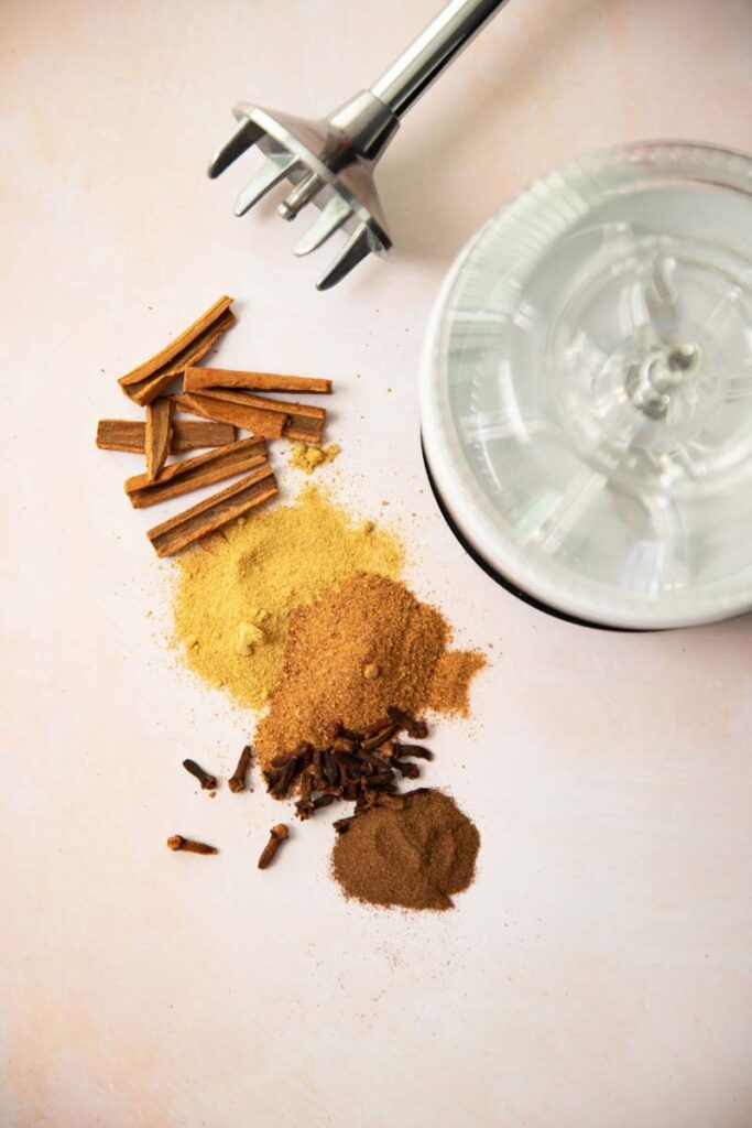 - Placez tous les ingrédients dans le moulin processeur bamix et mixez avec le bamix à la vitesse 2. Une fois que le bâton de cannelle et les clous de girofle sont bien réduits, ajoutez le disque poudre dans le moulin processeur et mixez de nouveau pour obtenir la poudre la plus fine possible. Versez le mélange d’épices dans un bocal et conservez pendant 6 mois.
